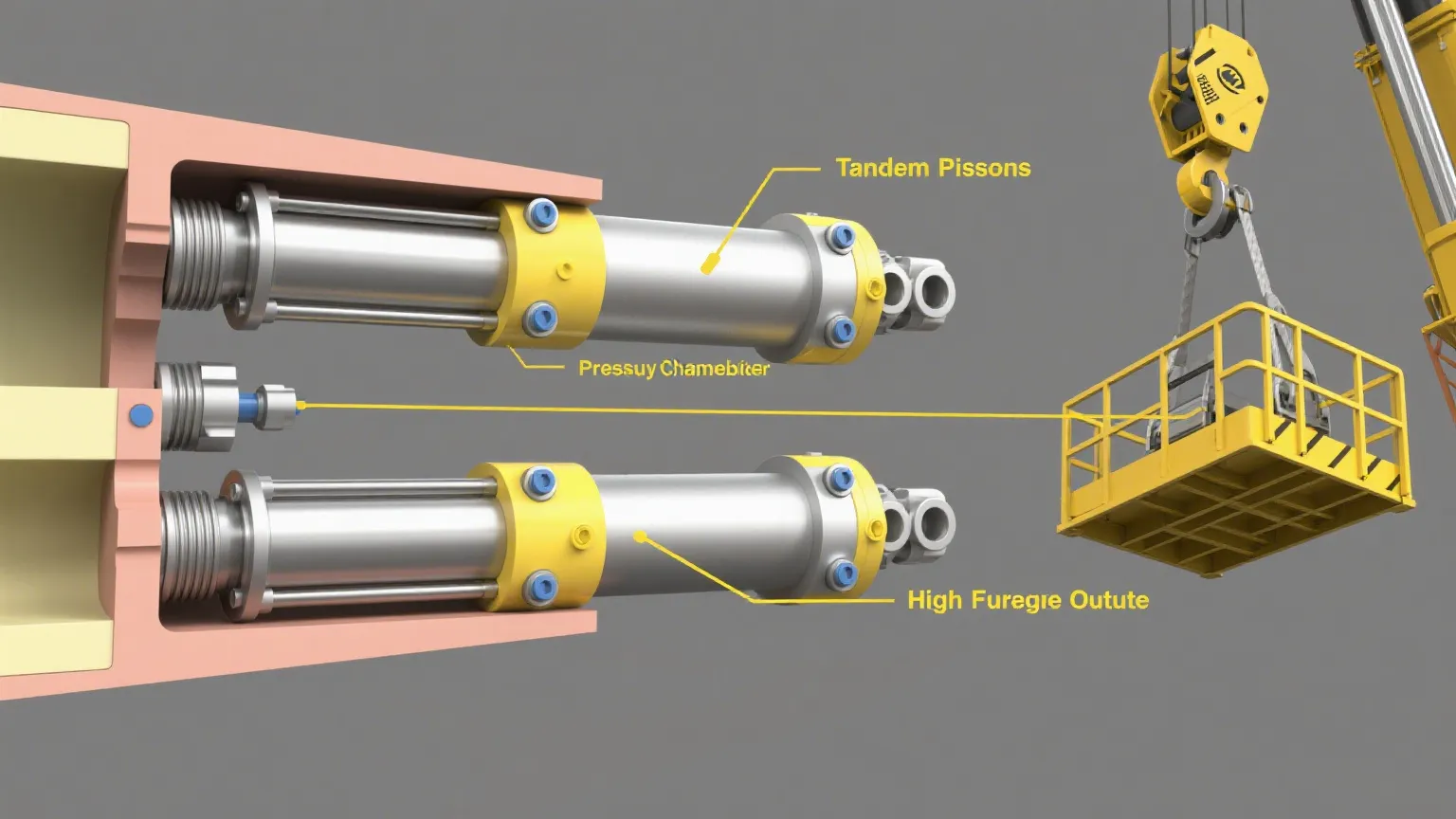 Тандемні гідравлічні підйомні циліндри — це груба сила. Вони розміщують два або більше поршнів в один ряд всередині одного циліндра, тому ви отримуєте більше підйомної сили, не роблячи циліндр ширшим. Добре підходить для важких машинних платформ, яким потрібно повільно піднімати дуже великі вантажі — подумайте про промислові підйомники, що рухаються сталевими балками, або важкі вертикальні підйомники, які не можуть дозволити собі економити на міцності.