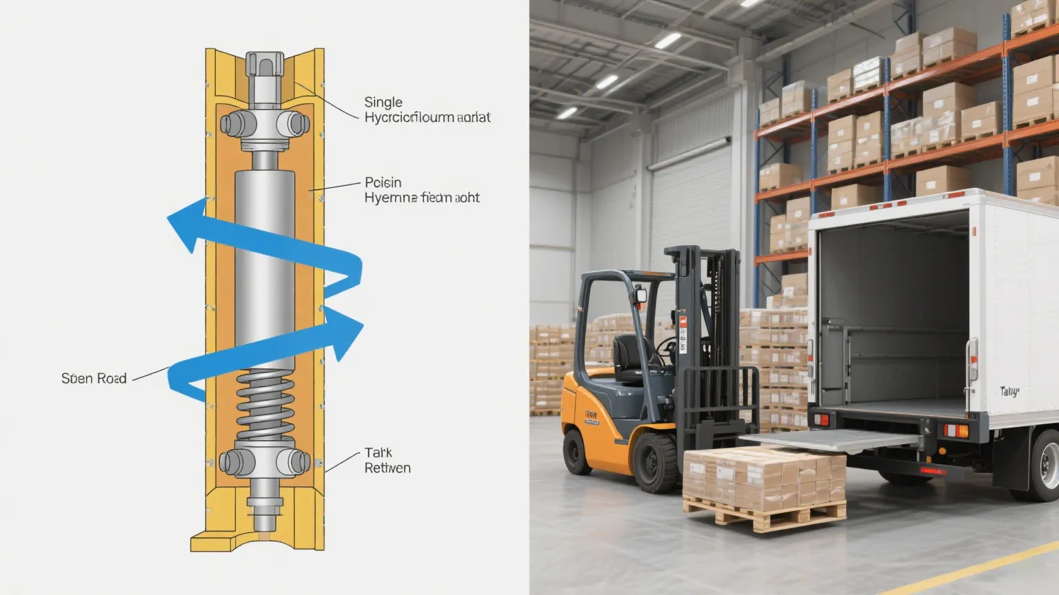 Візьмемо, наприклад, гідравлічний підйомний циліндр простої дії. Все просто: гідравлічний тиск штовхає поршень вгору, а сила тяжіння або пружина тягне його вниз. Без зайвих наворотів, тільки надійна дія. Ви знайдете їх на таких речах, як хвостові підйомники для вантажівок або портативні столи-ножиці на складах — місця, де вам не потрібні вигадливі елементи керування, лише циліндр, який піднімається, коли вам це потрібно, і легко опускається назад.