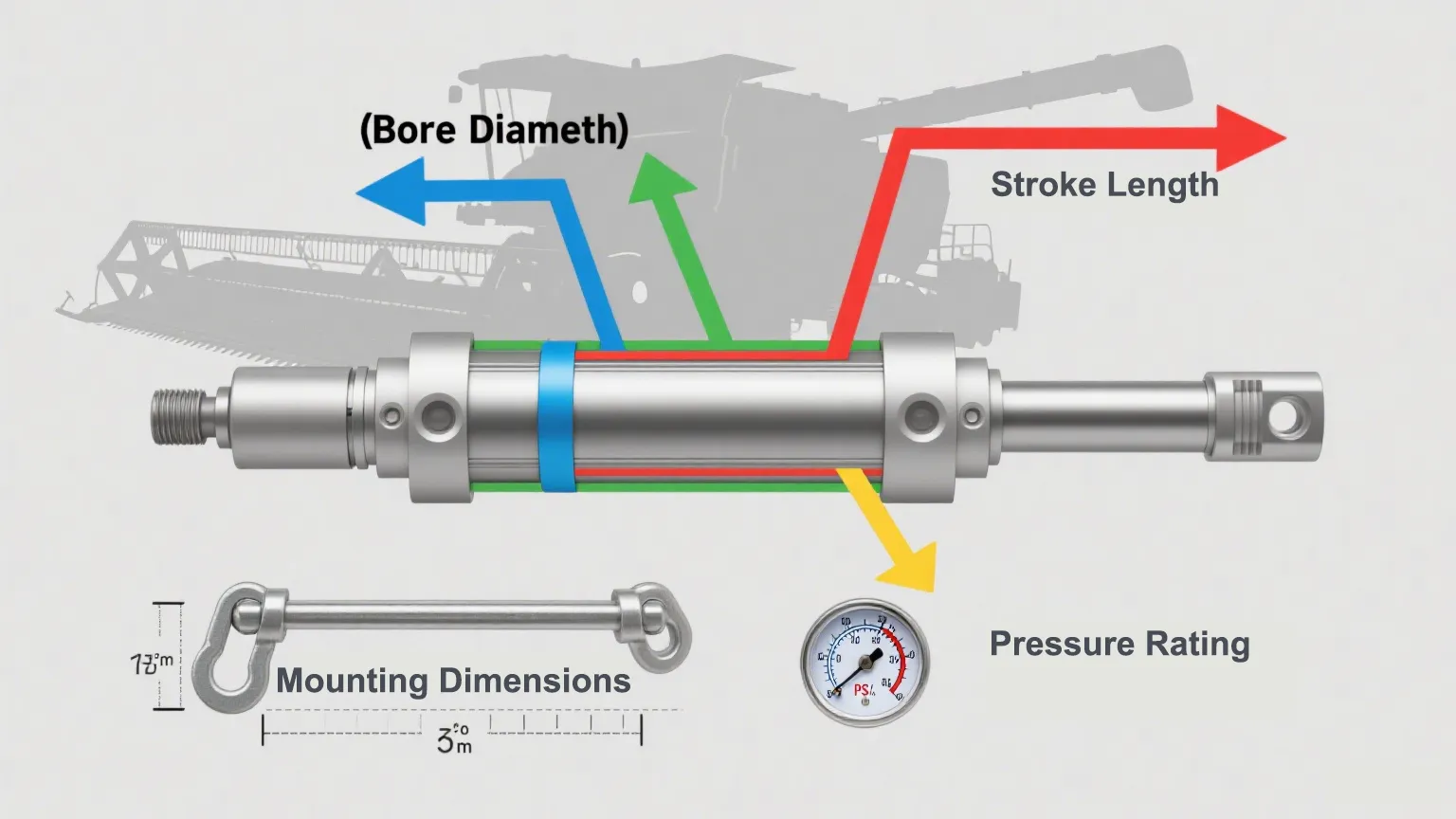По-перше, діаметр отвору. Це те, що визначає потужність гідравлічного циліндра комбайна. Занадто малий, і йому буде важко підняти цю важку жатку, коли ви на густих культурах. Занадто великий, і ви витрачаєте енергію, яка могла б піти в інше місце. Перевірте специфікації свого старого циліндра або інструкцію до комбайна — ці цифри мають збігатися, чітко й просто, якщо вам потрібна така сила, яка впорається з важкими днями в полі.