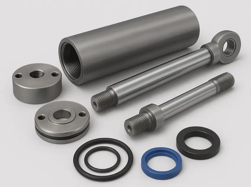 Гідравлічний циліндр є ключовим приводом у гідравлічній системі, і його нормальна робота невіддільна від взаємодії кількох основних частин. Частини гідравлічного циліндра включають стовбур циліндра, поршень, поршневий шток, торцеву кришку, ущільнення тощо. Кожна частина має певну функцію, наприклад, стовбур циліндра використовується для підтримки тиску, поршень перетворює гідравлічну енергію на механічну силу, а ущільнення запобігає витоку рідини для забезпечення стабільної роботи системи. Хоча структура проста, кожен компонент безпосередньо впливає на точність виведення та термін служби обладнання.